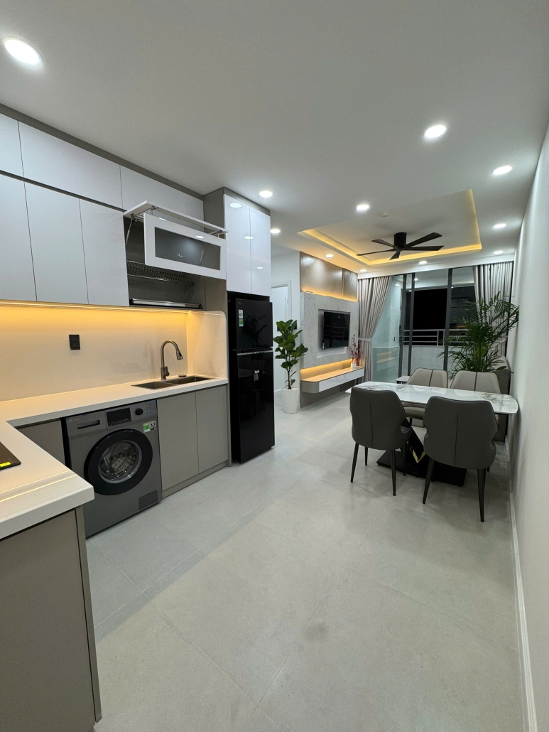 Nội thất mới: Căn hộ được trang bị nội thất mới 100%, thiết kế đẹp mắt và hiện đại, mang đến không gian sống sang trọng và ấm cúng.